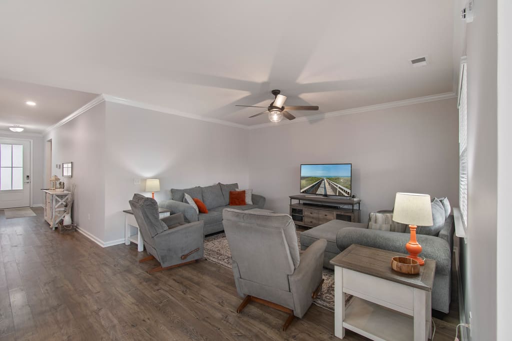 This spacious, open concept home has been extremely well kept by its conscientious owners, and is ready to be YOUR home! The downstairs consists of the primary bedroom, two guest bedrooms, two bathrooms, laundry room, kitchen, dining area, and a nicely sized living room. There is a second guest bedroom upstairs along with the bonus room and additional storage closets. This is a very efficient and comfortable floor plan with plenty of space. The kitchen, dining area and living room are all adjacent to each other, offering plenty of space for entertaining or spending time with family. Imagine yourself enjoying your morning coffee or an evening beverage on your huge screened porch with patio and fenced yard. If you envision guests coming to stay, the upstairs allows them their own sitting area in the bonus room along with a private bedroom and bathroom. The storage is abundant in this home with two linen closets downstairs and and a very large closet upstairs, along with a utility closet that leads to walk-in storage in the attic. The primary bedroom boasts a large closet as well. And by the way, this home received a new roof in 2023! This is a pleasant and quiet neighborhood with an extremely convenient location. The amenity center for this section of The Farm is nearby if you like to walk or ride your bicycle. The community itself is nestled right between Calabash and Sunset Beach, so you are no more than 15 minutes from the pristine sands of Sunset Beach and a stone’s throw from the town area of Calabash. Calabash is well known for its seafood restaurants and shopping. Opportunities for outdoor recreation abound in this vicinity with multiple beaches, golf and fishing.